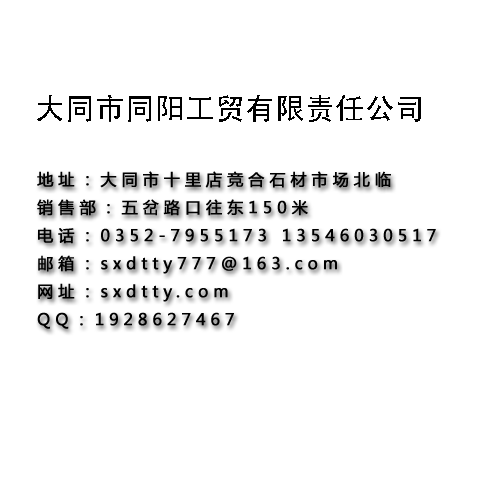大同市同陽工貿(mào)有限責任公司 備案號:晉ICP備13002694號-1 地址:大同市十里店競合石材市場北臨 QQ:1928627467 晉ICP備13002694號銷售部:五岔路口往東150米 電話:0352-7955173 13546030517 郵箱:sxdtty777@163.com 網(wǎng)址:sxdtty.com